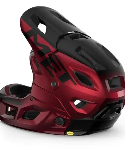Full Face Helmet Met Parachute Mcr Mips Met Parachute MCR is our convertible full face mountain bike helmet for Enduro, Trail and E-MTB. Parachute MCR has a magnetic coupling and release system of the chin guard, which allows a simple, instant and safe conversion. MCR is a revolutionary system created in partnership with Fidlock to facilitate the safety of your helmet and make you spend more time on the trails. Parachute MCR is designed to be truly two helmets in one. As a full-face it has an innovative and aggressive style that provides integral protection; as an open helmet it reflects the design and volume of our Trail helmets.